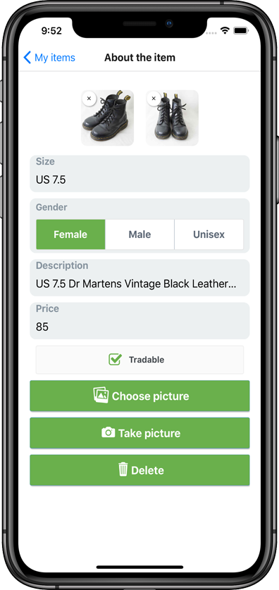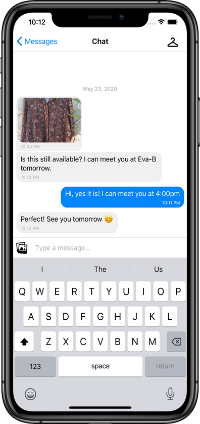 Browse clothes near you with the card-swiping interface. Once you liked an item, you will be connected with the seller.